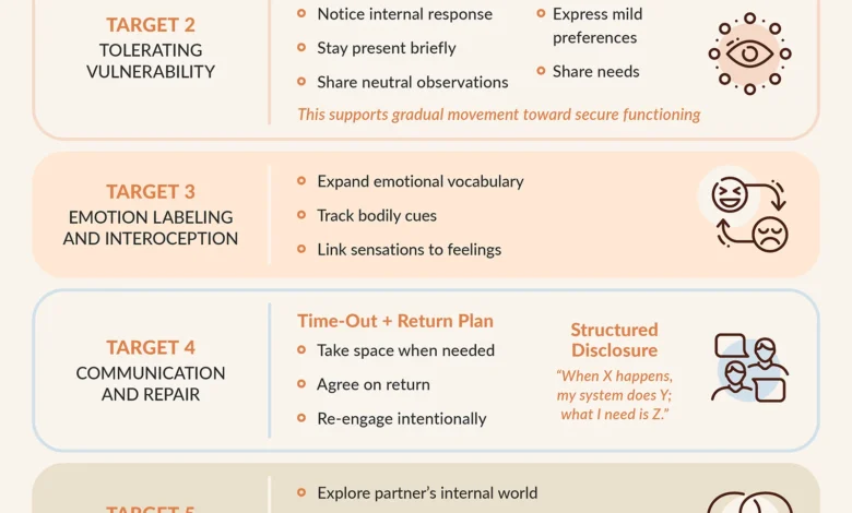 The therapeutic journey often follows a progressive pathway, moving from foundational awareness and regulation towards more complex relational skills and ultimately, earned security. This pathway involves: